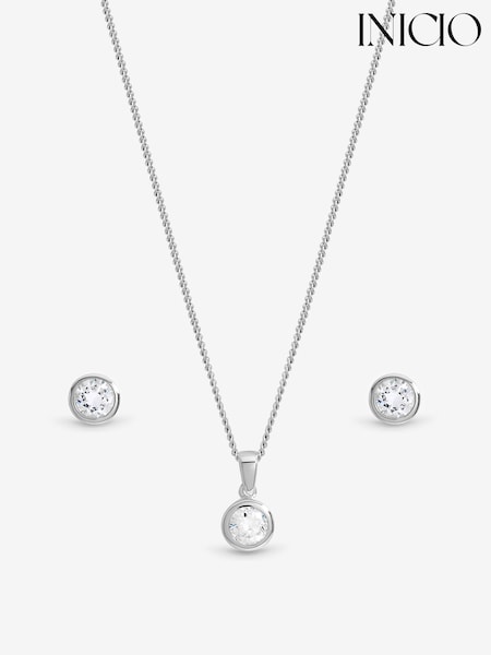 Inicio Sterling Silver Plated Cubic Zirconia Bezel Set Gift Box