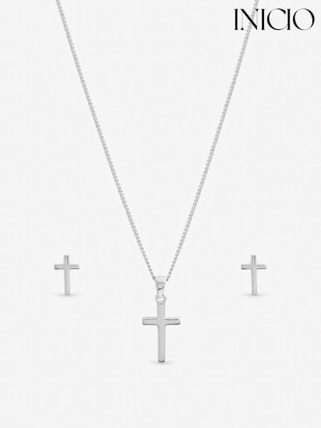 Inicio Sterling Silver Plated Polished Cross Set Gift Box