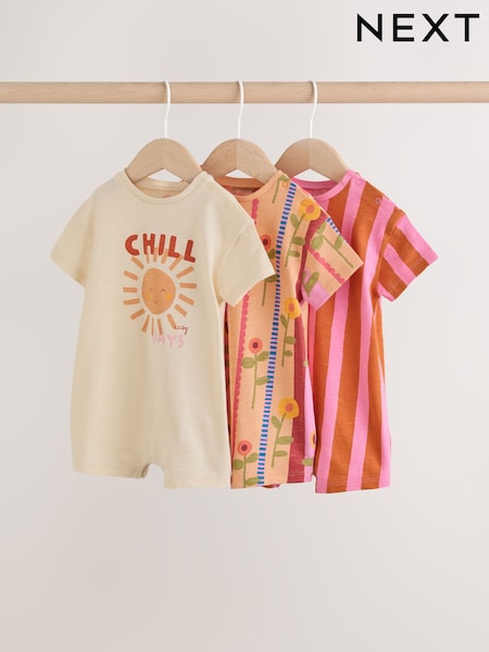 Red Sunbaked Patterened Jersey Baby Rompers 3 Pack