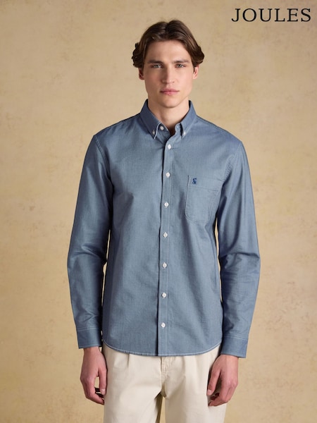 Joules Oxford Classic Fit Chambray Blue Long Sleeve Cotton Shirt