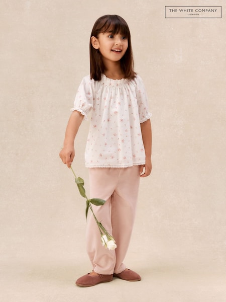 The White Company White Cotton Delphie Floral Blouse & Cord Trousers Set