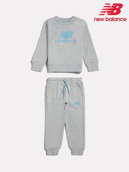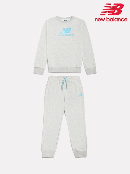 New Balance Grey Stacked Logo Crew Neck Sweat Top & Joggers Set