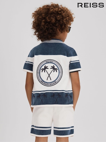 Reiss Optic White/Airforce Blue Bowler 9-13 yrs Velour Embroidered Striped Shirt