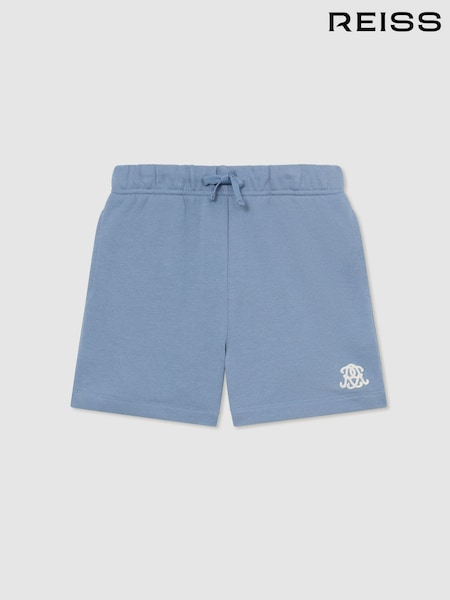 Reiss Airforce Blue Levin 3-9 yrs Monogram Embroidered Cotton Shorts