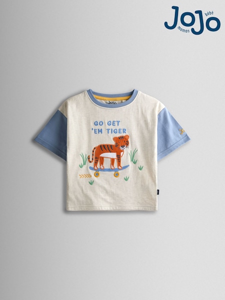 JoJo Maman Bébé Oatmeal Tiger Character Appliqué T-Shirt