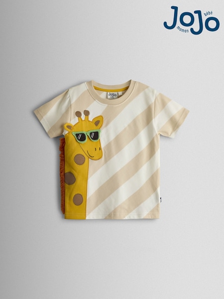 JoJo Maman Bébé Natural Giraffe Appliqué T-Shirt