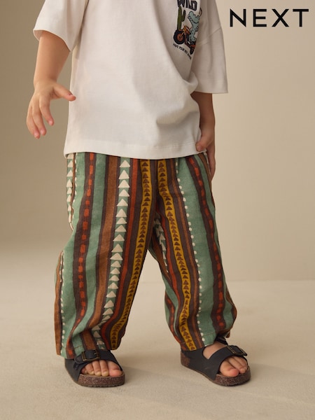 Multi Print Wide Fit Linen Blend Pull on Trousers (3mths-7yrs)