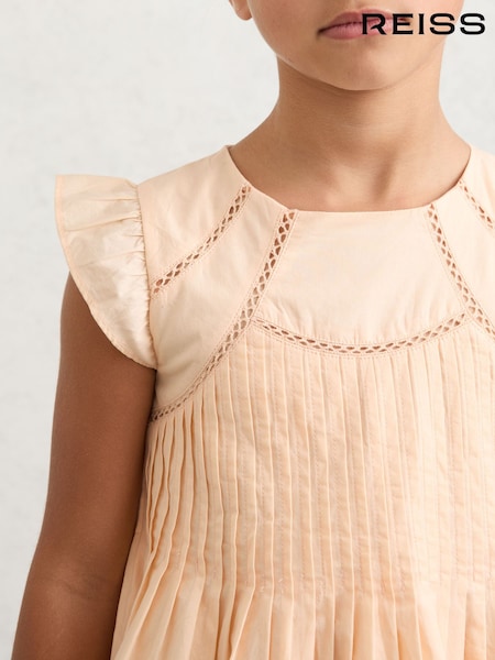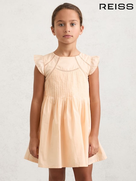 Reiss Peach Susie Cotton Pintuck Cap-Sleeve Dress