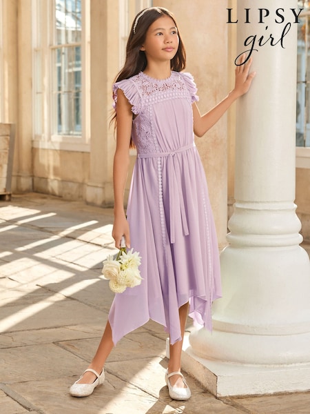 Lipsy Lilac Purple Embellished Flower Hanky Hem Occasion Dress (5-16yrs)