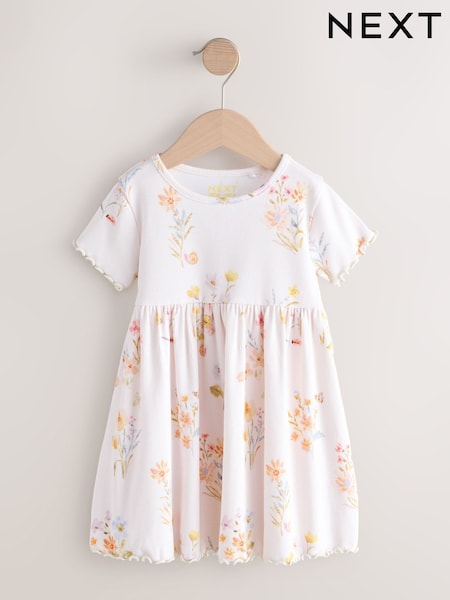 Cream Floral Short Sleeve Ribbed Dress (3mths-7yrs)
