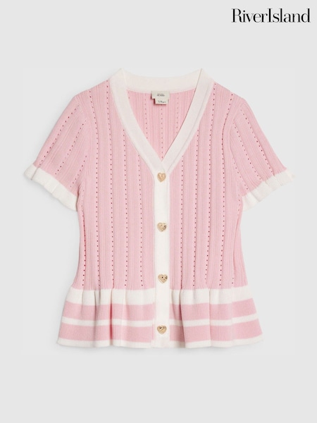 River Island Pink Stripe Peplum Polo Cardigan