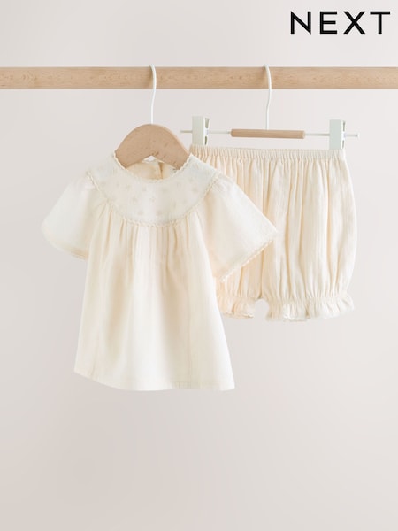 White Woven Baby Top and Shorts 2 Piece Set (0mths-2yrs)