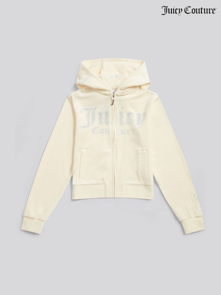 Juicy Couture Cream Velour Diamante Zip-Through Hoodie