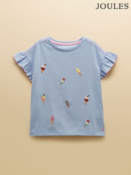 Joules Girls' Waverley Blue Frill Sleeve T-Shirt