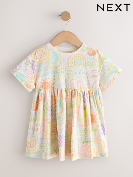 Cream Floral Short Sleeve Rib Summer Dress (3mths-7yrs)