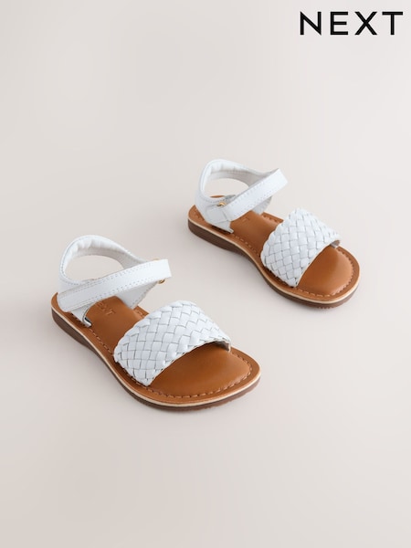 White Leather Woven Sandals with Touch Fastening