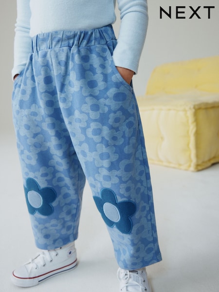 Blue Flower Embellished Barrel Trousers (3mths-7yrs)