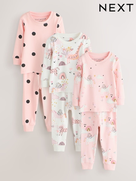 Ecru/Pink Unicorn Snuggle Pyjamas 3 Pack (9mths-10yrs)