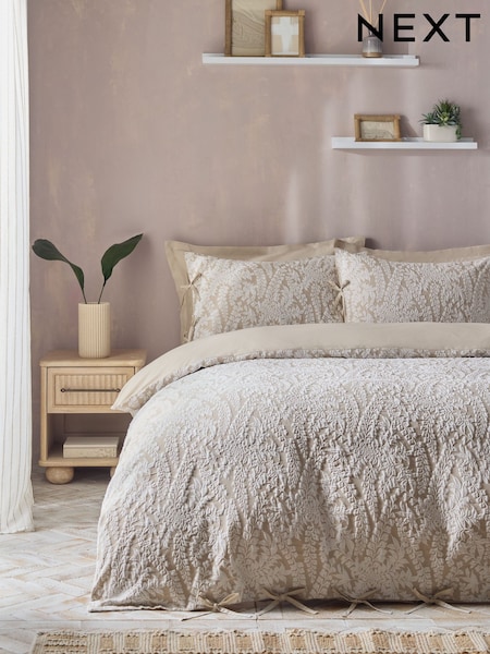 Natural Floral Jacquard Textured Duvet Cover and Pillowcase Set