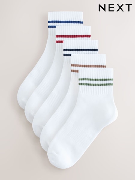White Tipped 5 Pack Cushioned Mid Trainer Socks