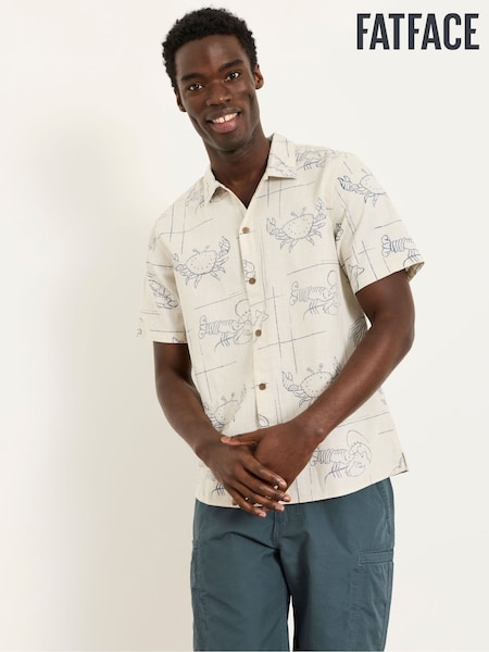 FatFace Natural Short Sleeve Seafood Print Shirt
