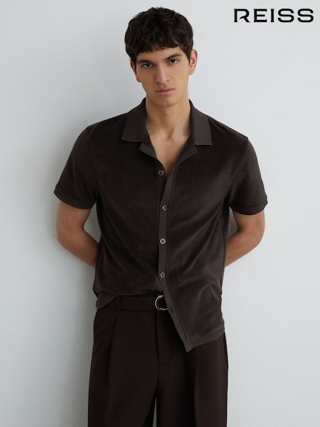 Reiss Chocolate Brown Eden Towelling Short-Sleeve Shirt