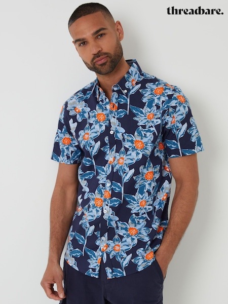 Threadbare Blue Floral Print Short Sleeve Shirt