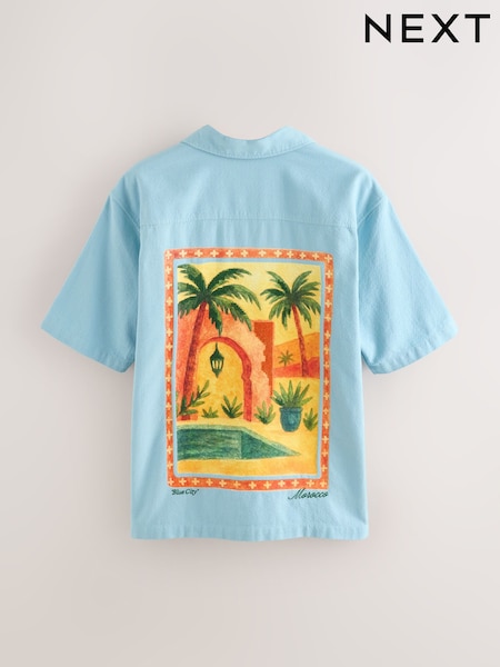 Blue Hokusai Wave Textured Short Sleeve Shirt