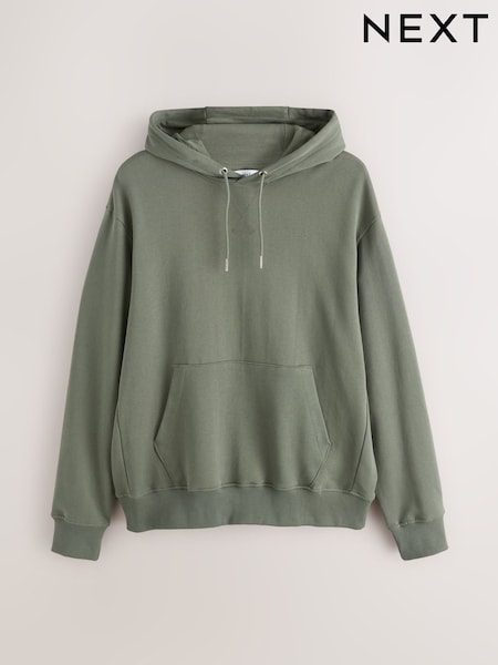 Khaki Green Cotton Rich Lightweight Jersey Hoodie