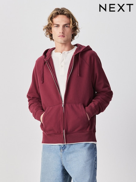 Berry Red Heavyweight Washed Zip Through Hoodie