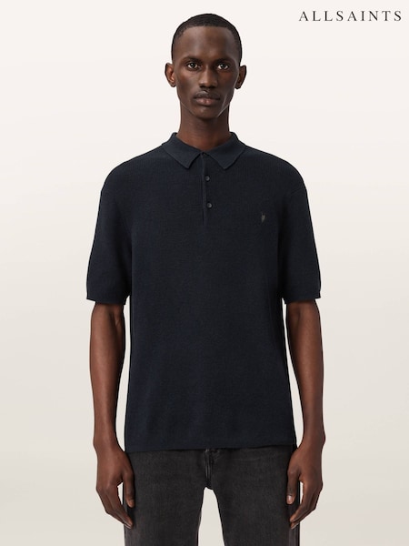 AllSaints Blue Aspen Short Sleeve Polo Shirt