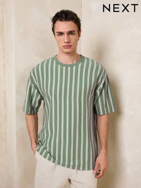 Green / White Textured Stripe Heavyweight Relaxed Fit T-Shirt