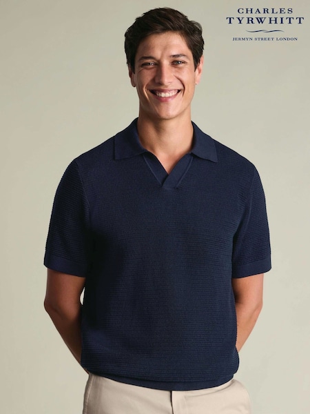 Charles Tyrwhitt Blue Cotton Trophy Neck Knit Polo Shirt