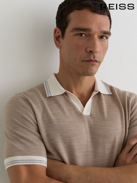 Reiss Wheat Melange Redmire Merino Wool Tipped Polo Jumper