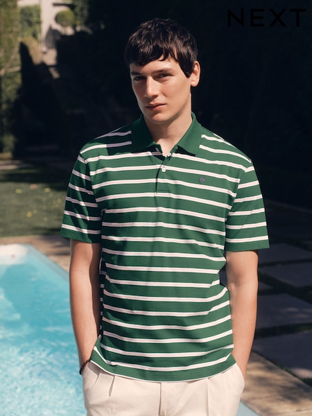 Green Horizontal Striped Polo Shirt