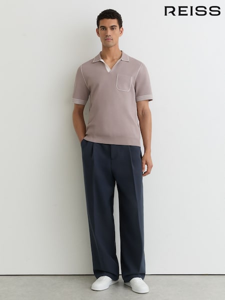 Reiss Light Taupe Brown Newbury Contrast-Stitch Knitted Polo Shirt