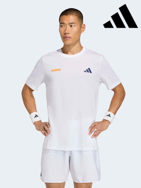 adidas White Tennis Graphic Print T-Shirt