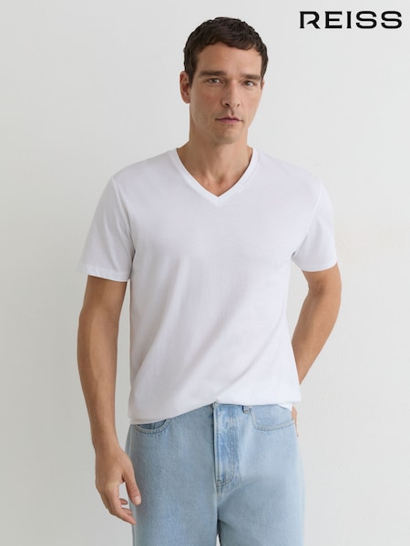 Reiss White Dayton Cotton V-neck Tailored-Fit T-Shirt