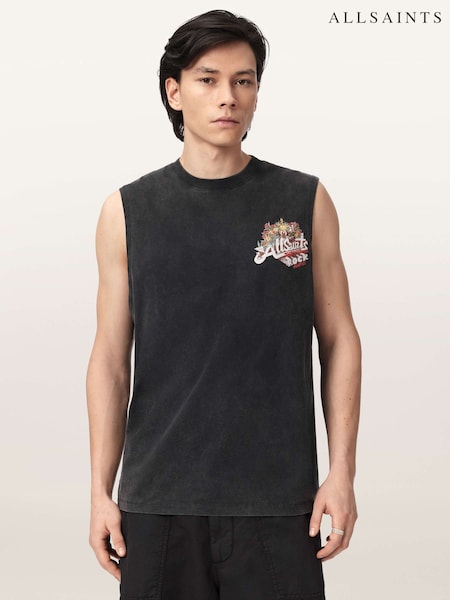 AllSaints Black Roque Sleeveless Crew Neck T-Shirt