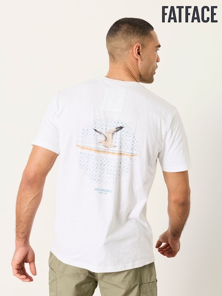 FatFace White Embroidered Bird Graphic Tshirt
