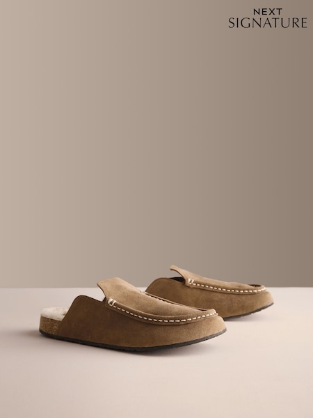 Taupe Signature Suede Apron Slippers