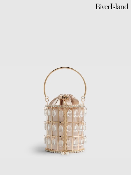 River Island Gold Diamante Basket Bag