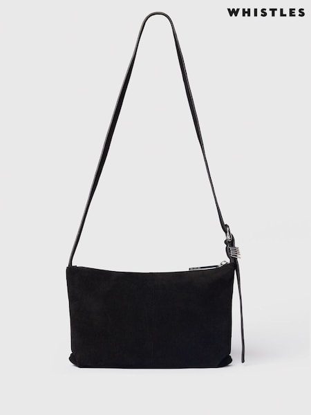 Whistles Black Ring Detail Suede Bag