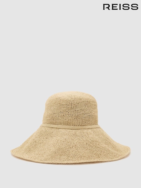 Reiss Natural Astrid Contrast-Trim Straw-Effect Hat
