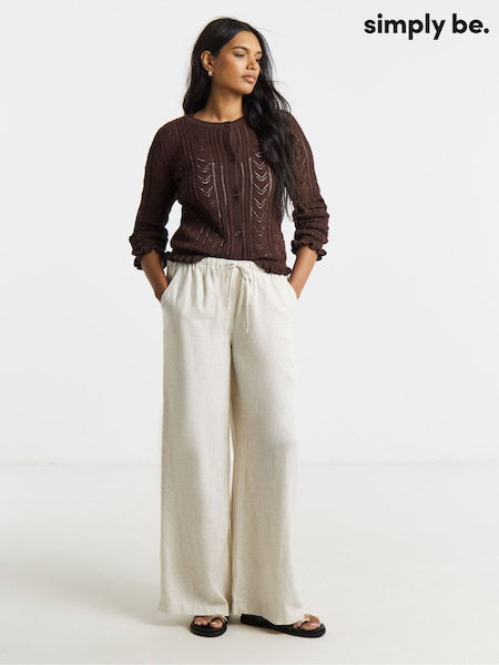Simply Be Brown Pointelle Crew Neck Frill Cardigan