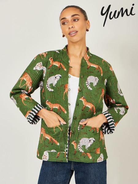 Yumi Green Fox Reversible Cotton Quilted Jacket