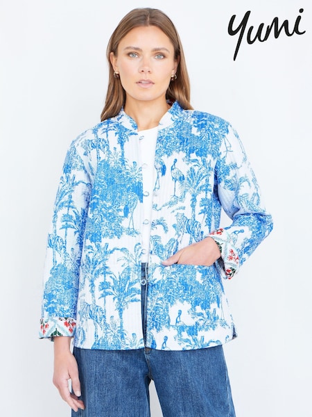 Yumi Blue Palm Reversible Cotton Quilted Jacket