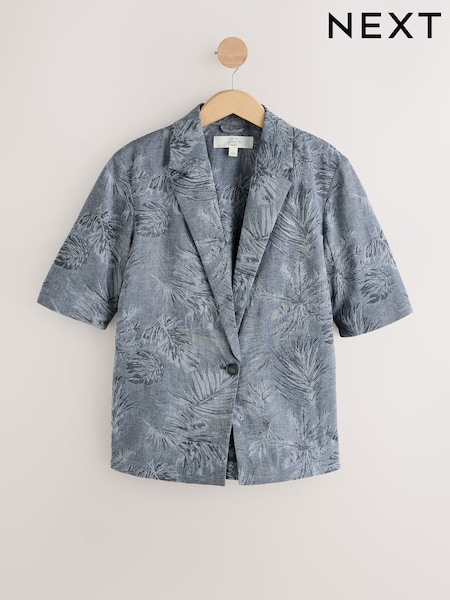 Indigo Blue Jacquard Short Sleeve Jacket with Linen