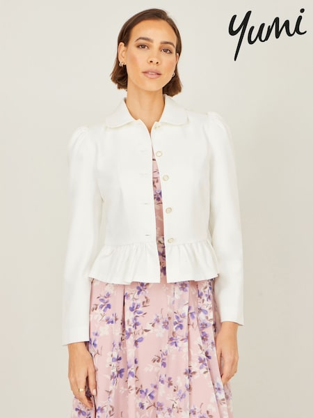 Sosandar White Metallic Short Sleeve Boucle Jacket