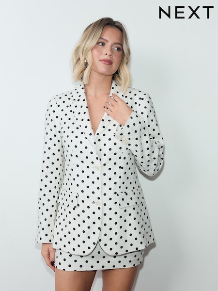 Monochrome Polka Dot Single Breasted Blazer with Linen